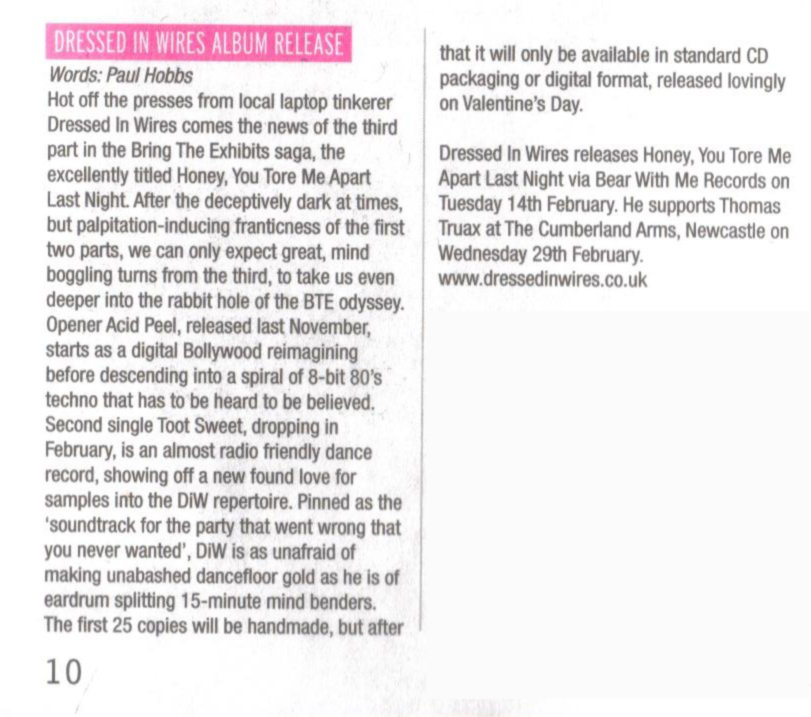 Guess what, there's also a second Pop Single to go along with it. The sensational and dangerous "Toot Sweet" is available from 6th Feb as a Pay What You Fancy download, B-sided amiably by "Urgh, Girls", along with track stems for budding remixers, now how could you turn that down and look at yourself in mirrors.dressedinwires.co.uk/tootsweet.htm