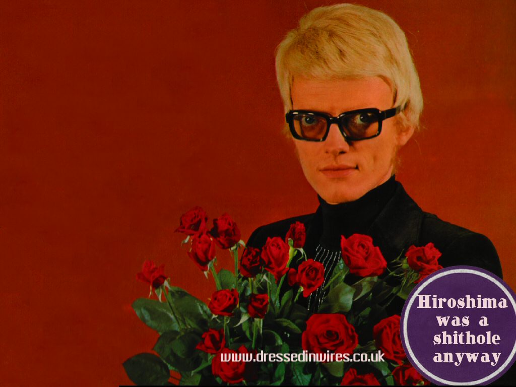 Some special treats, madam? Dig these funky official Dressed in Wires Desktop Backgrounds, they took aaaages to do. Click on the one you'd like to confront you each day, and then do a right-click Save As, gorgeous. They are 1024x768, no problem son.