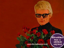 Some special treats, madam? Dig these funky official Dressed in Wires Desktop Backgrounds, they took aaaages to do. Click on the one you'd like to confront you each day, and then do a right-click Save As, gorgeous. They are 1024x768, no problem son.